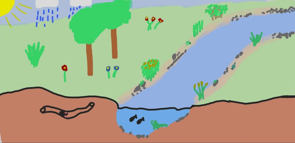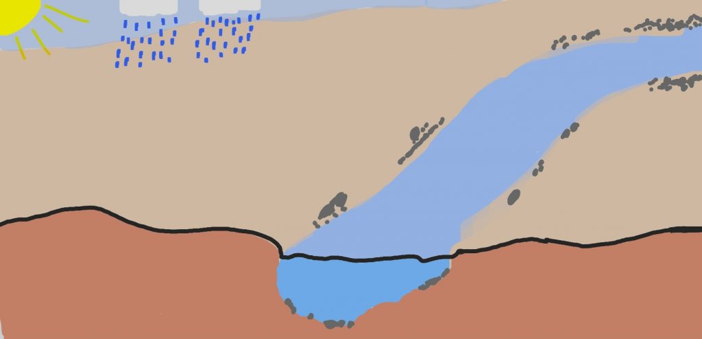 Es gibt verschiedenen Arten von Gewässern. Grundsätzlich kann man diese in stehend oder fließend einteilen. Stehende Gewässer sind Seen oder Teiche. Fließende Gewässer sind Flüsse und Bäche.[2]