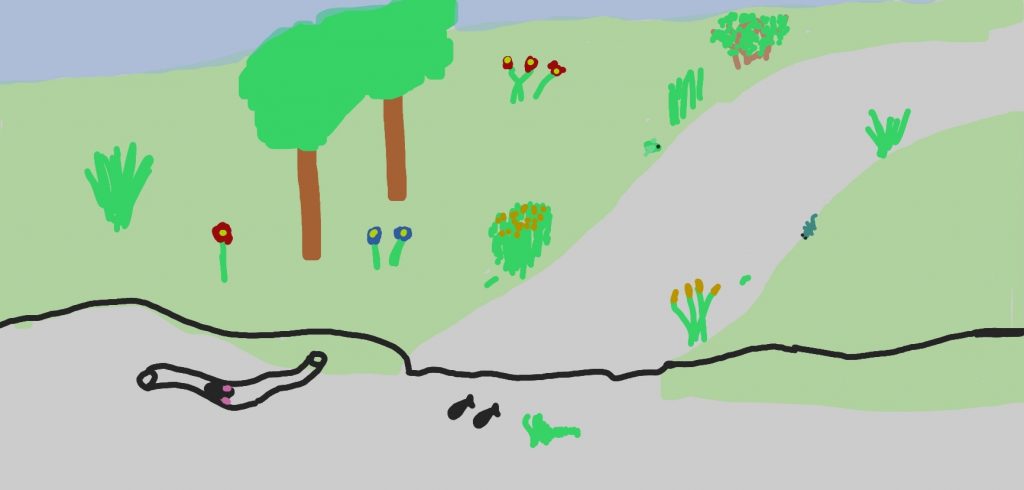 Übung 02: Sammle zur Abbildung passende Begriffe. Unterscheide dabei Lebensgemeinschaft und Lebensraum. Schreibe deine Begriffe auf einen Papierstreifen und klebe ihn an die Tafel.